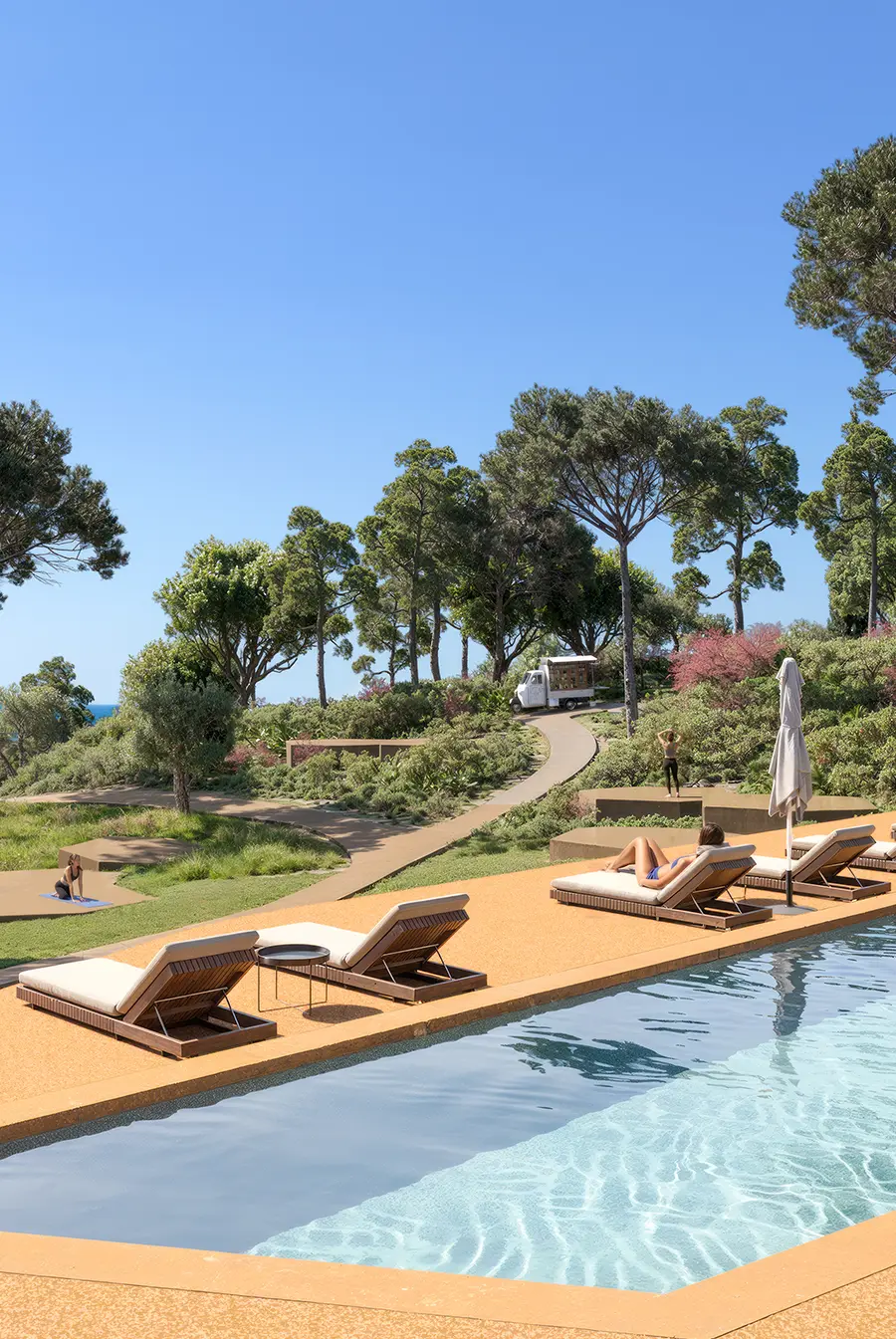 Exclusive access to pools, lush gardens, and a serene, low-density setting.